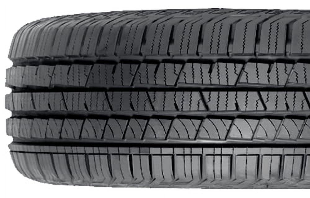 • The CrossContact LX molds Continental’s Tri-net silica tread compound into an asymmetric tread design that delivers all-season handling and traction. Its notched outboard shoulder supported by a continuous circumferential rib promotes on-road steering response, straight-line stability and ride comfort. Continental’s Acoustic Alterra Technology, derived from the study of sound over all surfaces, helps reduce road noise.