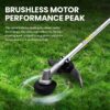 Brushless Motor, Peak Efficiency Utilizes industry-leading brushless motor technology with a specially designed external rotor, delivering impressive power comparable to a 32CC fuel engine. Low noise, high efficiency, injecting powerful energy into your mowing tasks while enjoying the convenience and tranquility of technology.