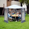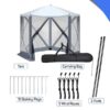 Constructed with a dark gray 210D oxford canopy, light gray mesh sidewalls, and black fiberglass poles, this waterproof tent measures 10’x10’x7.38′ (300x300x225cm) and comes with a 61.4″ carrying bag for easy portability. Ideal for camping, patio parties, picnics, or outdoor events, it combines spacious coverage, insect protection, and quick setup for versatile outdoor use.