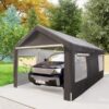 10×20 Heavy Duty Steel Canopy Tent with Roll-up Ventilated Windows, Garage Carport with Removable Sidewall and Doors, Gray