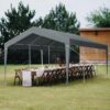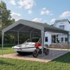 12x20FT Heavy-Duty Steel Carport Canopy with UV-Resistant Grey PE Cover, No Sidewalls, for Cars/Storage/Outdoor Events