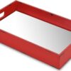 - Red rustic finished serving tray with beveled mirror