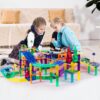 PicassoTiles 150 Piece Race Car Track Building Block Educational Toy Set Magnet Tile Magnetic Blocks Playset 4 Cars Early STEM Learning Construction Kit Hand-Eye Fine Motor Skill Brain Training PTR150. With 40 columns and 6 slopes, this PicassoTiles magnetic tile building block racetrack set allows for the construction of multi-layered 3D tall buildings, encouraging imaginative play and fostering STEM learning. (1 x AA battery per car is required and NOT included)