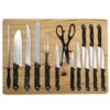 – Knives include bread knife, chef s knife, carving knife, santoku knife, steak knife, boning knife, kitchen shears scissor, fork, serrated slicer, and more