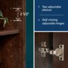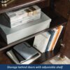 – ADJUSTABLE SHELVING Three adjustable shelves for flexible storage options. Each adjustable shelf has a maximum weight capacity of 25 lbs. Hidden storage behind doors.