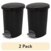 (2 pack) Sterilite 2.6 Gallon Ultraa c StepOn Trash Can, Plastic, Bathroom, Black Trash Can