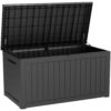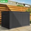 – 230-gallon outdoor storage box, you’ll have a huge amount of storage space to hold more items. Whether it’s family party supplies, camping gear, gardening tools, or children’s toys, this extra large capacity storage box will meet your storage needs.