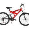 The Dynacraft NEXT 24-inch Boys Gauntlet Bike is an exciting and fun ride designed for kids ages 12+. With 18 speeds, a Shimano rear derailleur, easy-to-use Shimano grip shifters, and front and rear alloy brakes, this bike offers safe, smooth rides and quick stopping power. The strong dual-suspension steel frame ensures comfort on various terrains. Featuring bold red color with black and white designs, it’s perfect for young adventurers looking to level up their biking experience.