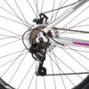 This 27.5” ladies mountain bike from Huffy is durable but light thanks to the aluminum hard tail frame. This fun-to-ride mountain bike includes a suspension fork to deliver great control as you navigate the bumpy terrain of a paved trail or enjoy a nice ride around the neighborhood. This 21-speed index shifting system with a Shimano rear derailleur provides you with a smooth transition between gears for uphill grades or a level path.
