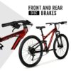 This Hyper Explorer Dual Suspension Mountain bike is the key to outdoor fun. It has a lightweight hydro form aluminum frame that lets users ride harder for longer, providing a reliable experience. The 29″ Hyper explorer dual suspension is designed with a front and rear suspension to offer a smooth ride on any surface. It features 9 speeds, ensuring versatility in the ride. The men’s 29″ mountain bike has a 1 x system, allowing ease and comfort. It also allows riders to change the gears quickly and smoothly. It has alloy rims and front and rear disc brakes. This bike is made with standard pedals for a comfortable and secure ride. It has grips on the handlebars for sustained comfort and control. It has a sleek design that provides a modern look. The bike can be ridden on a variety of surfaces, allowing for flexibility in where you go with it. This is an adult bike for ages 13+.