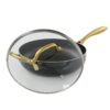 Have your kitchen essentials ready with this 3.5 Quart Aluminum Nonstick Saute Pan With Lid. With a gorgeous golden handle and elegant black and gold speckled interior, this pan is just as great to look at as it is to use. This pan is perfect for new home owners or even those looking to upgrade their cookware. Nonstick interior and ergonomic handles makes it super easy and convenient to use. Tempered glass lid allows you to safely watch your food while it’s cooking. Although dishwasher safe, it’s highly recommended to hand wash as extensive use of detergents may cause surfaces to dull.Item Dimensions: 20.50 x 10.50 x 6.25Item Weight: 3.35lbs