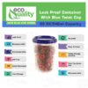– LEAK PROOF: When lids are screwed onto the container the container would not allow liquids to leak out. Flipping, shaking and dropping will not cause leaks unless seal is broken