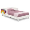 – INTERCHANGEABLE BOOKSHELF: This versatile toddler bed includes 3 interchangeable bookshelves choose from white shelf, a dinosaur shelf or a rainbow shelf | Keeps your child s favorite books within reach