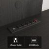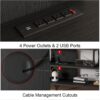 – Efficient Device Charging Hub: Transform your living room with this sleek black TV stand equipped with a built-in charging hub boasting 4 AC outlets and 2 USB ports.
