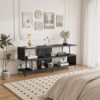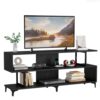– Chic Industrial Design: Elevate the style of any room with the sophisticated black finish and industrial-inspired design of this TV stand. Its sleek aesthetics complement a range of furniture styles, adding a touch of elegance to your room.