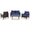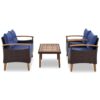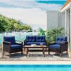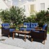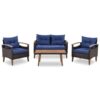 4 Piece Wicker Conversation Set,PE Rattan Outdoor Sofa Set with Wood Table and Cushions,All Weather Outdoor Sectional Sofa Set,Blue