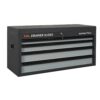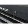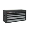 Four wide drawers of varying depths let you organize your tools the way you want in the SHOPMAX 41-in. 4-Drawer Top Tool Chest. With a total holding space of 9,471 cu. in., you can organize everything you need for any-sized project. Two recessed, aluminum side handles help you lift and move the total chest capacity of 600 lb. Get extra-heavy usage with an all-welded, 20 ga. steel construction. Smooth-gliding ball-bearing drawer slides can handle up to 100 lb each, and keep your tools in place when opening/closing. The built-in secure latch mechanism prevents the doors from opening when moving the chest. The lid is reinforced with a sturdy, stamped Shopmax logo. Paint is a rust-resistant composition finished with a rugged, non-scratching rough finish.