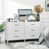 – Steel Wood Frame, High Stability: The bedroom dresser is made of steel wood frame, structure is stable, thus avoiding the inconvenience caused by insufficient or misaligned holes. X shaped steel frame on the back further enhances chest of drawers stability. The top of dresser support weight up to 300lbs, each drawer can support weight 30lbs, built to last feel