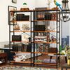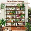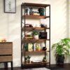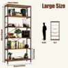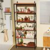 5-Tier Wooden Bookcase Storage Shelves Organizer, Retro Bookshelf Plant Display Shelf, Wood and Steel Frame Open Wide for Balcony