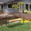 Enjoy a pleasant afternoon relaxing in your garden, deck, or backyard with this stylish patio bench from Outsunny. This bench is sturdy yet comfortable enough to sit on with a combination of steel and solid wood construction. It seats two people so that you and a friend can spend the day relaxing outside. Add a touch of class to your patio space with this Outsunny outdoor entry bench.