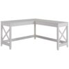– This corner desk features an x-shaped frame design and wood grain surface, which enables it to seamlessly integrate with most home decor styles.
