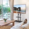 – With lockable wheels, once unlocked it is quite easy to roll the TV cart to another room.