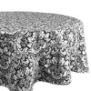 70 Charcoal Black and Gray Floral Damask Pattern Round Table Cloth