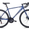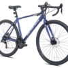 The genesis 700c bohe men’s gravel bike comes in a great satin denim blue color. This bike combines style, practicality, and speed for a one-of-a-kind ride that is sure to excite bicycle enthusiasts. You can have both stunning looks and practical design in one sturdy package where you can go on mild off-road adventures or stay in town with this bike. The 14-speed gravel bike features an aluminum frame and comes with Shimano rear derailleur and both, front and rear disc brakes, a quick-release seat post and it is set up to easily add a water bottle cage to the frame. The genesis 700c men’s gravel bike is versatile and simple to operate and easy to maintain. This is a classic-looking bike with a blue frame and black wheels.