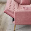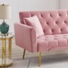 71 Inches Velvet Futon Sofa Bed with 2 Pillows,Modern Convertible Futon Couch with 3 Adjustable Backrest Angles and Gold Metal Feet,Suitable for Apartment,Living Room,Small Space,Pink