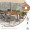 Welcome to this impressive outdoor table, which invites up to 8 guests to dine in its supreme style. The superior materials and higher quality of the table, as well as its crack resistant and burr free acacia wood top, ensure its durability and robustness. It is supported by a sturdy metal frame that can handle up to 165 pounds, while the additional triangular metal further improves its stability. On sunny days, you can plunge your favorite umbrella into the 1.9-inch umbrella hole to create a cool oasis for al fresco dining. Slatted tops are designed to drain efficiently, keep clean and prevent puddles. Its adjustable foot pads ensure stability. This dining table can be used for a variety of purposes, both indoor and outdoor, and comes with detailed manuals for easy assembly. For your 8 guests, this table will be ideal for your stunning dining scene.