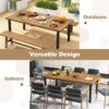 79 Inch Outdoor Dining Table for 8-person with Umbrella Hole and Adjustable Foot Pads and Metal legs, Natural and Black