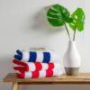 - Red and white stripe beach towel