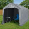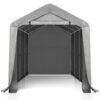 8’X12′ Gray Outdoor Storage Shelter Shed PE Fabric Carport with Removable Sidewalls, 6 Ground Bars, 23 Stakes and Wind Ropes – for Trucks, Boats, ATVs, and Garden Tools