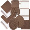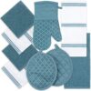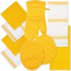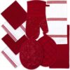 Introducing our comprehensive 9-piece Kitchen Linens Set, designed to cover all your kitchen needs. This set includes a variety of essential items, including kitchen towels, dishcloths, oven mitts, and pot holders.