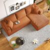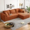 AENKYO 104 Modular L-Shaped Sectional Sofa with Chaise Lounge, Cloud Couch Deep Seat, Corduroy Upholstered Living Room Furniture, No Assembly Required, Orange