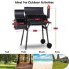 AKIUDEX Outdoor Portable BBQ Charcoal Grill with Offset Smoker for Pit Patio Backyard, Black