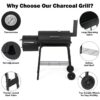 – Portable and Versatile Design: Whether you’re hosting a backyard barbecue, tailgating, or camping, our charcoal grill’s portable design and sturdy construction ensure convenient transportation and reliable performance wherever you go.