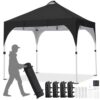 Alden Design 10 ft Pop-Up Canopy Tent W/ 17 Solar LED Lights Sandbags Roller bag for Outdoor, Black