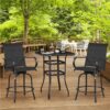 – Alden Design 2pcs Outdoor Swivel Texteline Bar Stools Foam-padded for Garden, Black