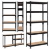 – SMILE MART 2 Pieces of 5 Tiers Boltless Storage Shelf with Metal Frame for Warehouse Store Home, Black: