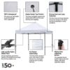 – Quick simple assembly: It only needs 2 people to set up or disassemble this commercial heavy-duty shelter. All of the fittings are included in the package. If you have any questions or problems, please contact our customer service for further assistance.