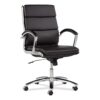 Alera Neratoli Mid-Back Slim Profile Chair, Faux Leather, Supports Up to 275 lb, Black Seat/Back, Chrome Base