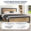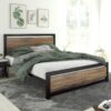Allewie Queen Size Metal Platform Bed Frame with Square Frame Wooden Headboard&Footboard, 12.4 Under-bed Storage Space, Brown