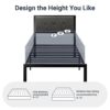 – Reliable Foundation: The bed frame is strong and long-lasting with 13 metal slats, 6 sturdy legs, and reinforced structure for stability. It can support different mattresses without a box spring, with a max weight of 300 pounds for a twin bed.