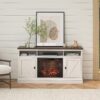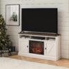 Elevate the ambiance of your home with the Ameriwood Home Ashton Lane TV Console with Fireplace and Remote Control, an excellent choice that brings warmth and charm to your living room, family room, or bedroom at an affordable price. This TV stand with fireplace heater features a convenient remote-controlled 23″ electric freestanding fireplace insert, providing the mesmerizing glow of a realistic wood-burning flame without the hassle of upkeep. With the ability to heat up to 400 sq. ft., you can effortlessly achieve the perfect temperature ranging from 72° to 82° or opt for the soothing ambiance of the multiple brightness settings without the heat. The LED light source ensures long-lasting performance, boasting an impressive lifespan of up to 50,000 hours, guaranteeing years of enjoyment. The fireplace heater can be controlled by remote control with included AAA batteries or by the touchpad display. Designed to accommodate flat panel TVs up to 65″ wide and weighing up to 70 lbs., this fireplace entertainment center offers practicality and functionality. It includes two side cabinets that discreetly conceal four storage shelves along with a spacious open divided shelf, perfect for organizing your cable box or gaming systems. Thanks to the clearly marked components, putting it together is simple, and our dedicated customer support team is always available to assist. The front remains cool to the touch, ensuring it’s safe for children and pets. Additionally, replacement fireplace inserts help maintain the stylish look of your furniture for many years. This item ships in one flat box and requires assembly by two adults. Assembled measurements: 58″ W × 15.75″ D × 31.125″ H.