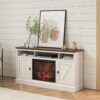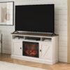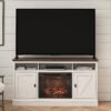 – AFFORDABLE MODERN FARMHOUSE DESIGN: Elevate the ambiance of your home with the Ameriwood Home Ashton Lane TV Stand with Fireplace; featuring open and closed storage and wire management