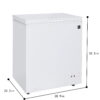 Enjoy the freedom to buy in bulk. This 5.0 cu. ft. chest freezer packs a lot of storage space and great features into a compact footprint. Built-in and adjustable leveling legs help to keep your freezer balanced and working to its greatest efficiency. Complete with an adjustable thermostat to keep your favorite foods frozen and a defrost drain for easy cleaning, this Freezer has it all. You can easily power off your freezer with the front-mounted, power switch.