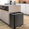 Enjoy a clean and quiet time with your family with the Arlopu stainless steel kitchen trash can. Stainless steel appearance, the rectangular shape gives the trash can a fashionable look. Pedal design allows you to throw garbage easily without bending over and touching the lid. Double-barrel allows two trash bins to be combined into one, which makes it easy to distinguish dry and wet trash. For large families, a 60L large-capacity trash can is also sufficient. A silent slow-down closing design allows you to hardly hear the sound when closing the lid.