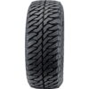 Excellent mud terrain traction is guaranteed thanks to the aggressive footprint. The tread’s staggered block pattern and optimal void ratio greatly enhance the soft, loose and uneven terrain grip, ensuring the tire’s forward motion at all times. Better off-road traction improves the tire’s performance through deep mud and on loose dirt. The self-cleaning tread design allows the tire to disperse mud and snow from the footprint. In this manner, they cannot pack between the tread elements and block the tire’s surface contact. This results in the tire’s overall off-road terrain performing safety.
