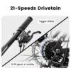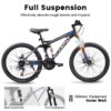 Experience a smooth and stable ride with this 24-inch mountain bike, designed for men and women between 4’2″ and 4’9″. Built with a durable steel frame, this bike supports up to 250 lbs while ensuring long-lasting performance. Equipped with a 21-speed thumb shifter, it offers seamless gear changes for tackling various terrains. The front fork suspension absorbs shocks, providing enhanced comfort on rugged trails. 24*2.125″ all-terrain tires deliver excellent grip and puncture resistance, making this bike perfect for dirt, gravel, paved paths, and trails. The mechanical dual disc brakes ensure powerful and reliable stopping in all conditions.